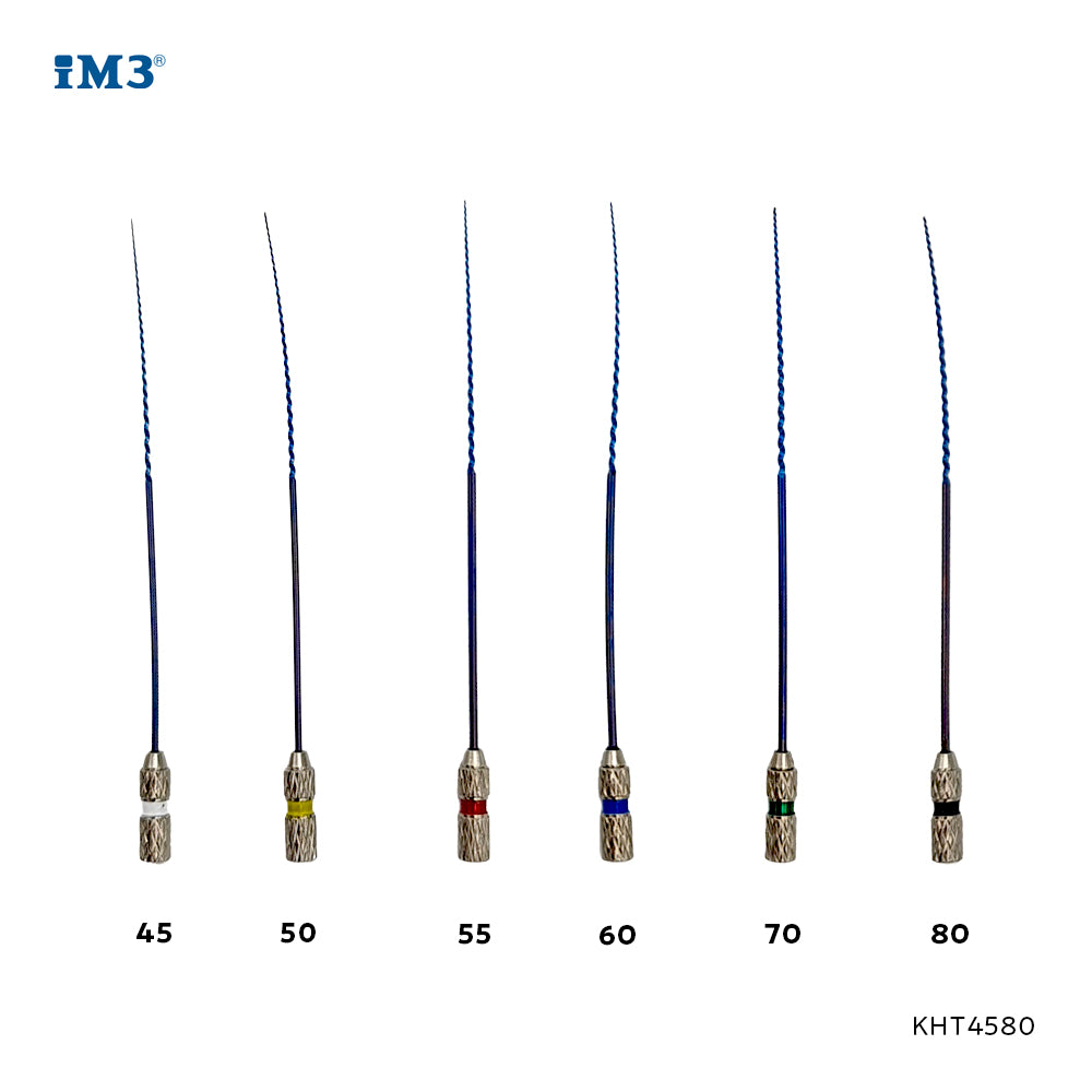 熱処理を施したニッケルチタン(Ni-Ti)製の新しいKリーマーです。従来品と比べてより柔軟性があります。